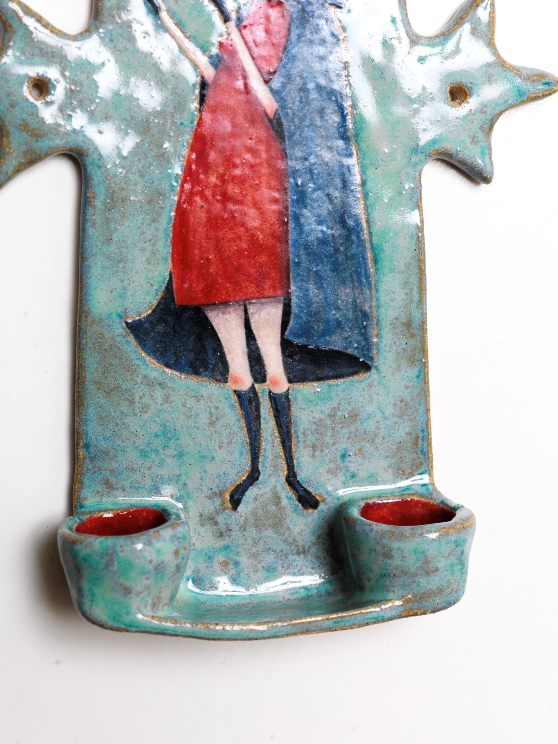 Ceramic illustration and candlestick holder.